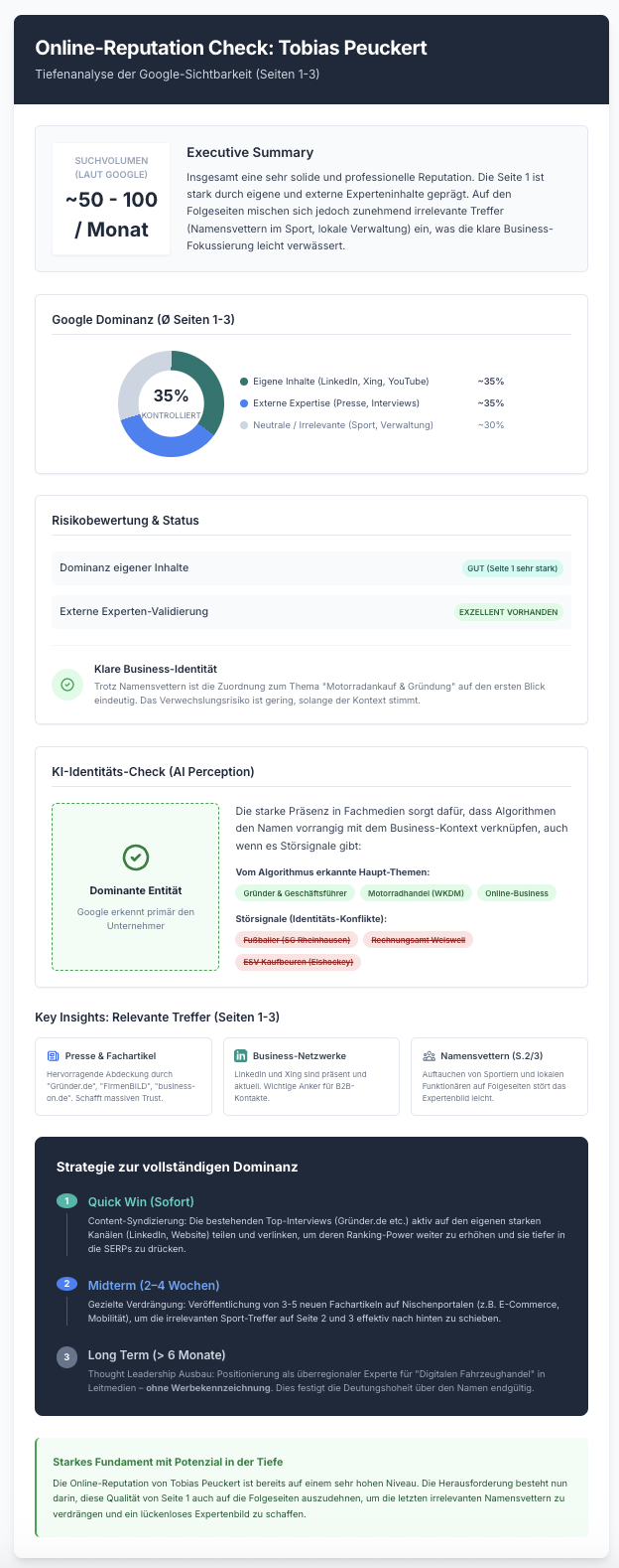 Genau so wird auch Ihr individueller Online-Reputation-Check aussehen – erstellt von unserem Redaktionsteam. Hier ein Beispiel: